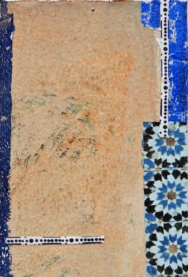 No. 0026 in the ever growing Love installation of tiny collages, ''it starts and ends with love", made in 2023. Handprinted papers and photocopied tiles from Porto, Portugal.