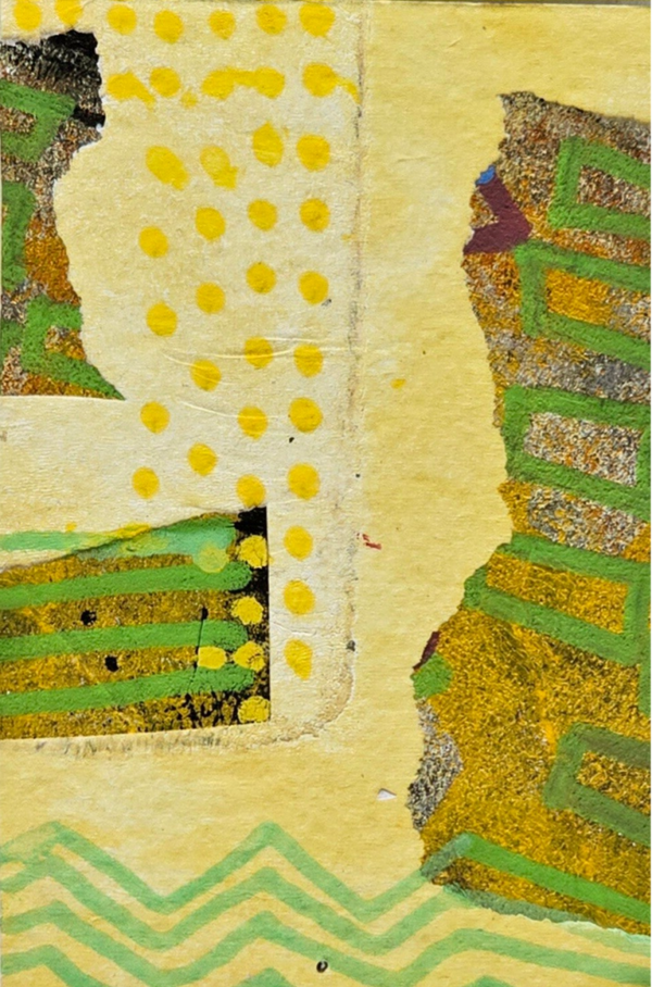 A framed collection of 12 tiny collages from the ever growing installation of these tiny pieces.
