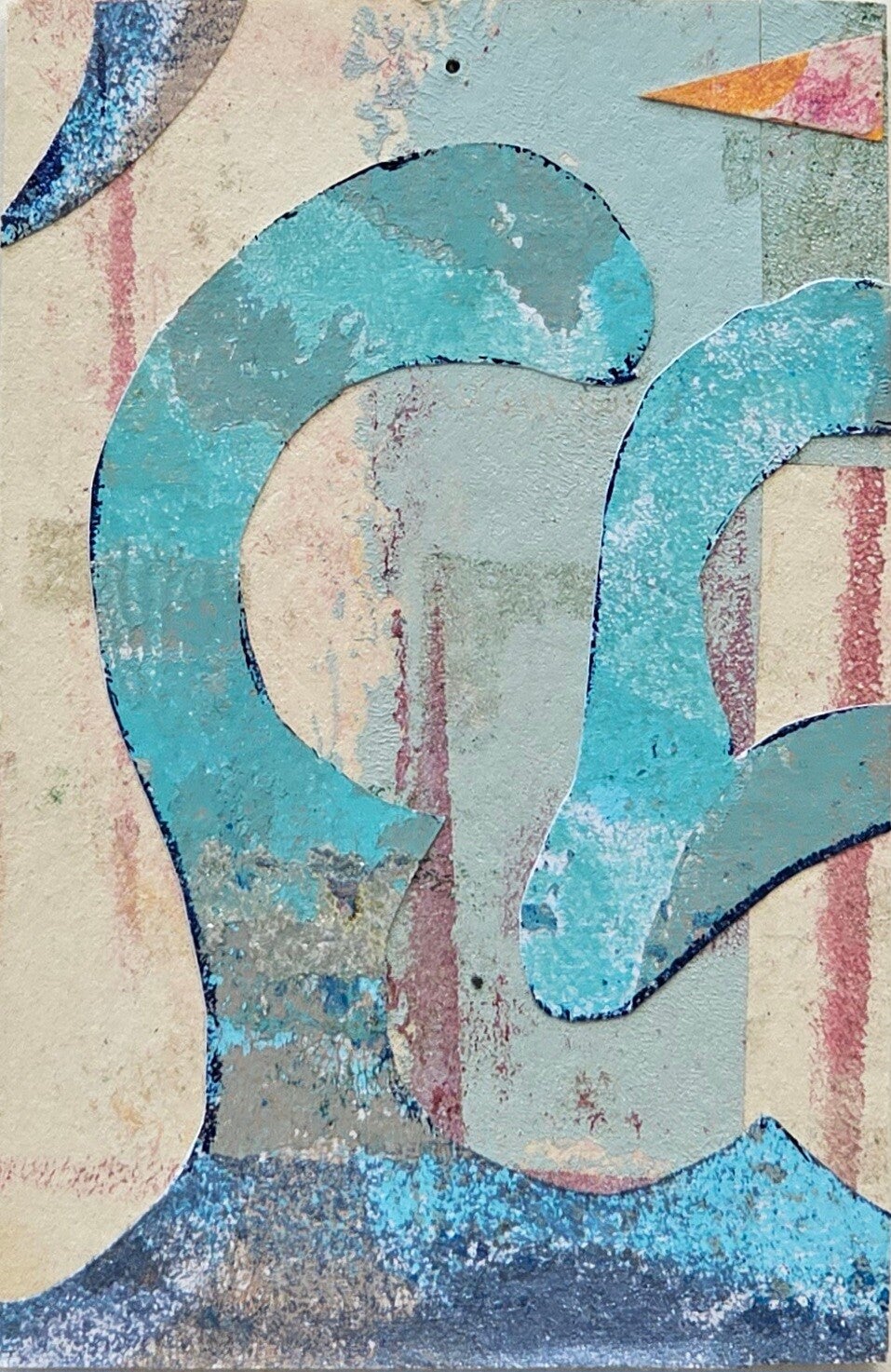 No. 0111 in the ever growing Love installation of tiny collages, ''it starts and ends with love", made in 2023. All handprinted papers.