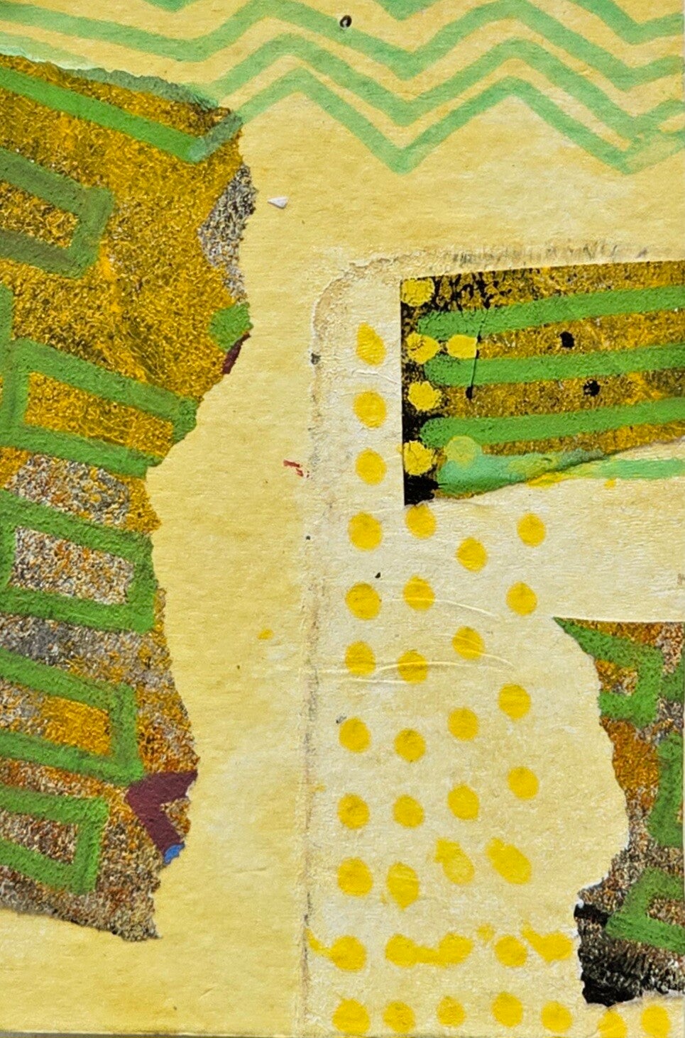 No. 0126 in the ever growing Love installation of tiny collages, ''it starts and ends with love", made in 2023. All handprinted papers.