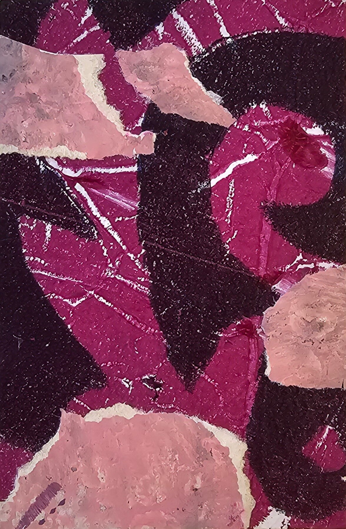 No. 0152 in the ever growing Love installation of tiny collages, ''it starts and ends with love", made in 2023. All handprinted papers.