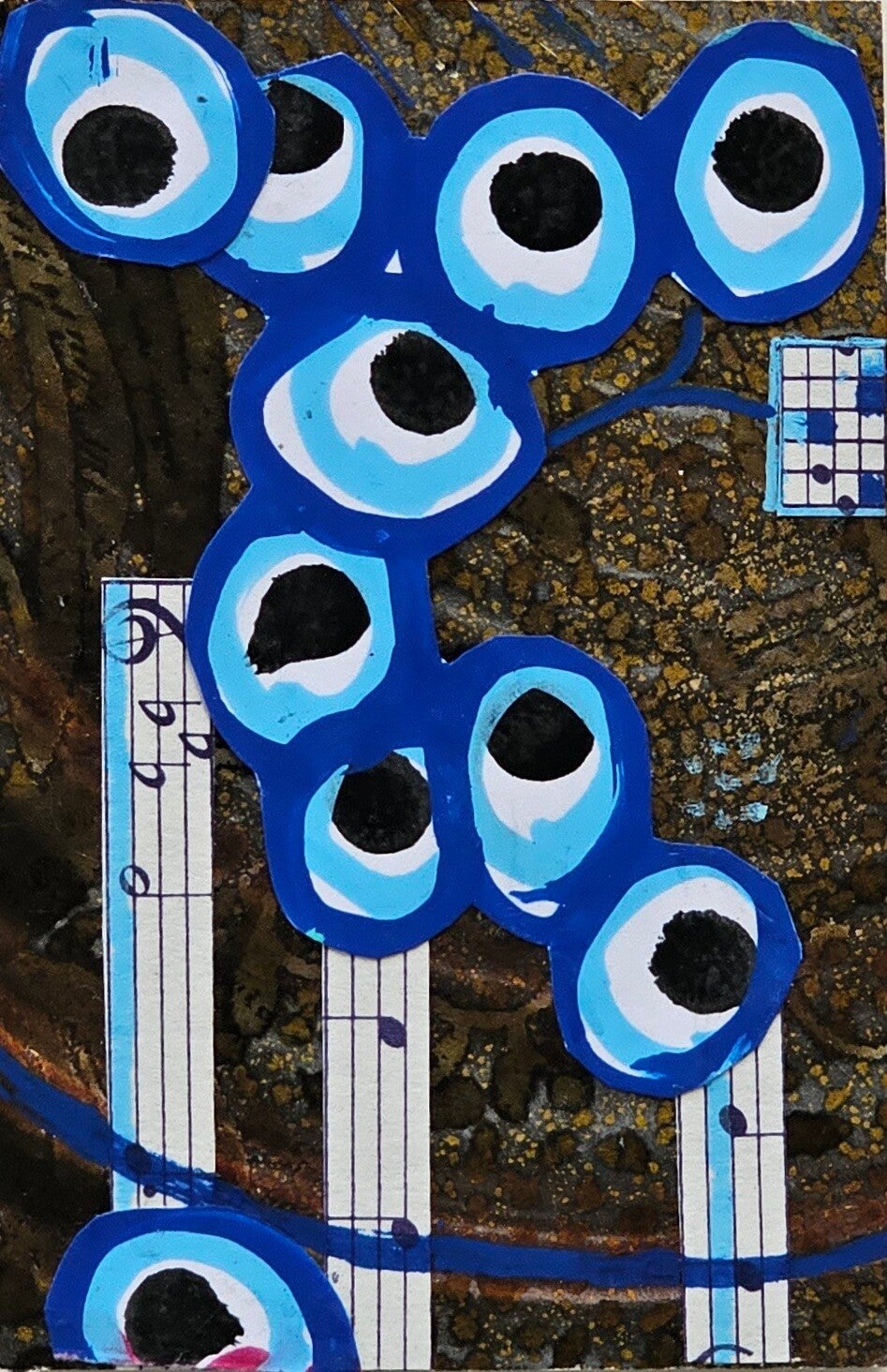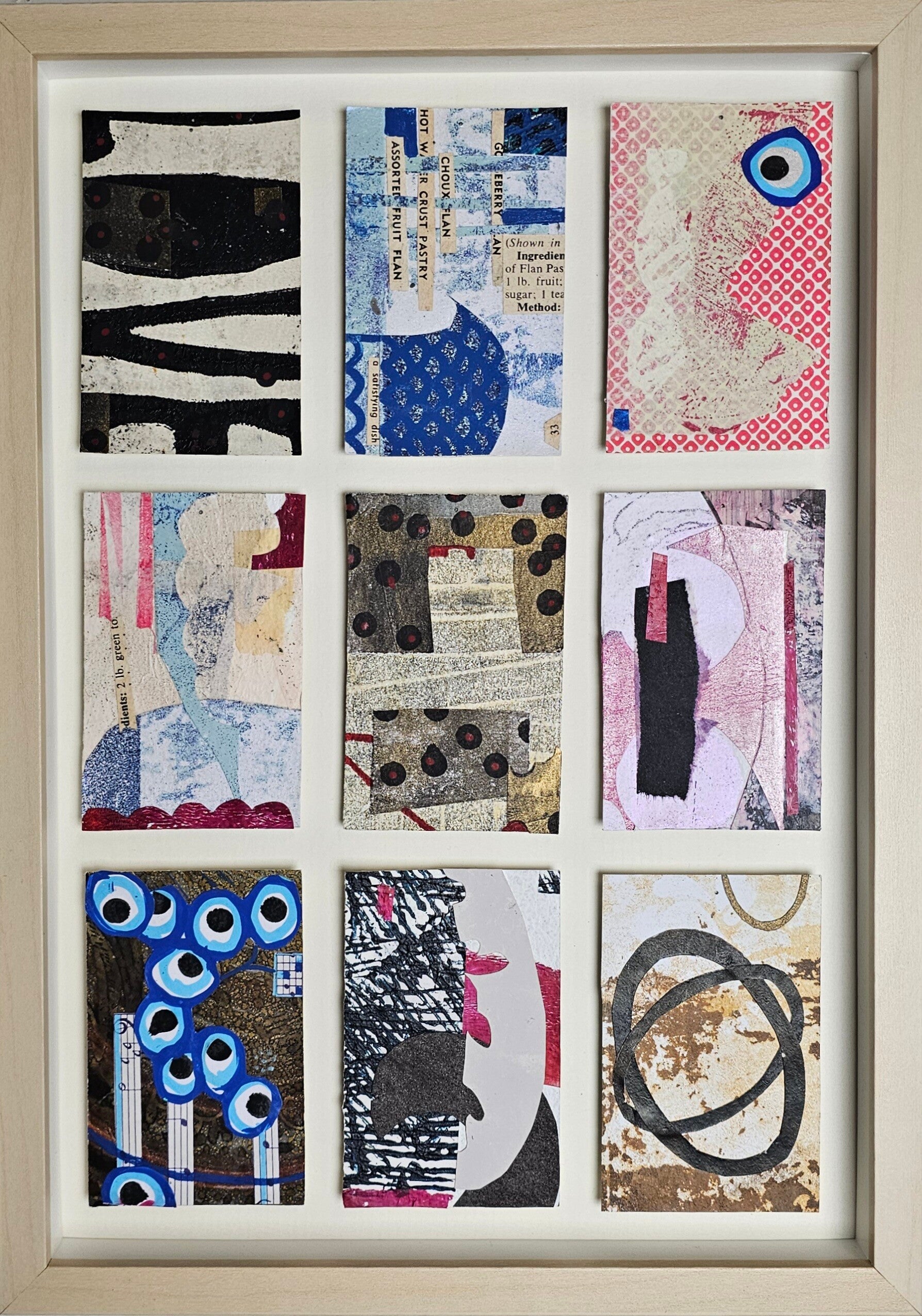 No. 0139 in the ever growing Love installation of tiny collages, ''it starts and ends with love", made in 2023. All handprinted papers.